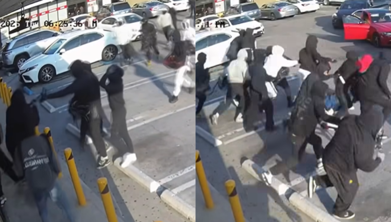 Cámaras captaron el momento en que una turba encapuchada intentó irrumpir en la joyería en California.
