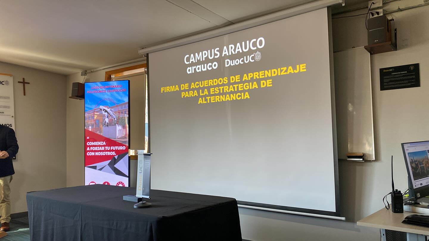 Como parte de su compromiso con el fortalecimiento de la educación técnico-profesional, el Liceo Bicentenario Politécnico Caupolicán de Los Álamos firmó un convenio de alternancia con el Centro de Formación Técnica Duoc UC sede Arauco. Esta alianza permitirá que estudiantes de las especialidades de Administración en Recursos Humanos y Electricidad desarrollen parte de su proceso formativo en un entorno de educación superior técnico, enriqueciendo sus aprendizajes y proyecciones laborales.