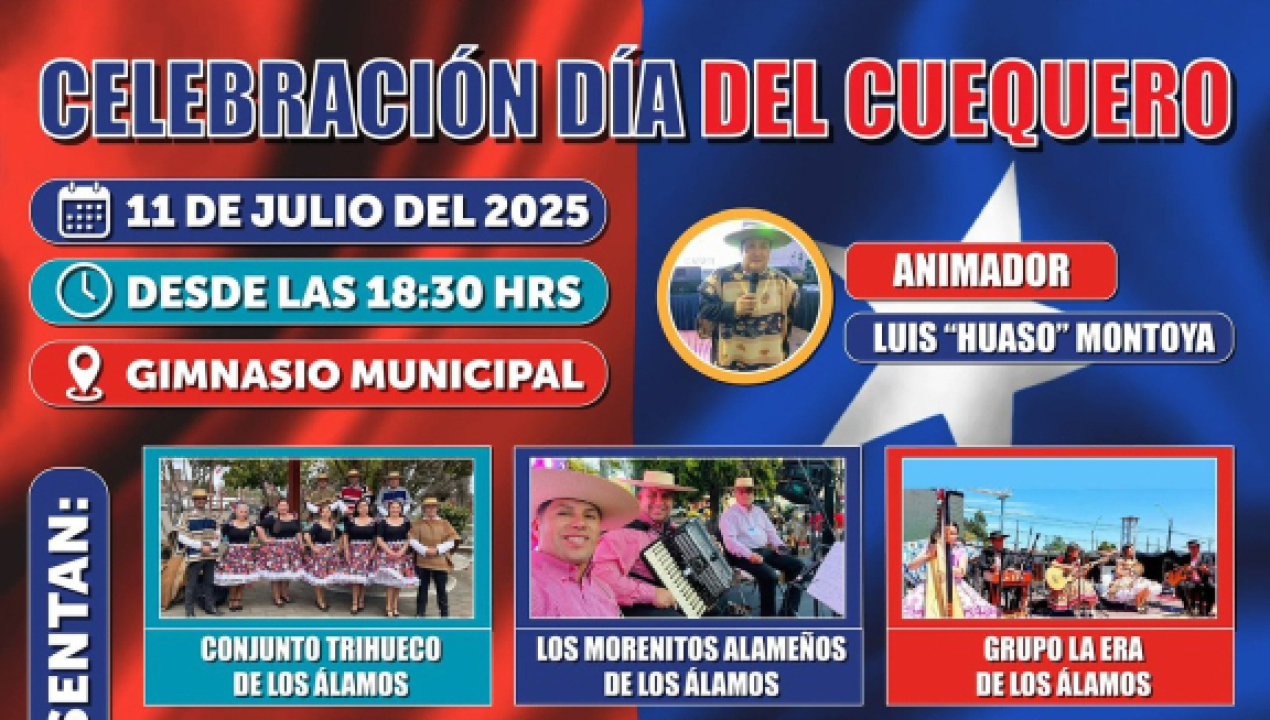 La Municipalidad de Los Álamos invita a toda la comunidad a participar de una jornada llena de tradición y música en vivo con motivo de la celebración del Día del Cuequero.