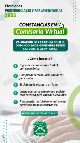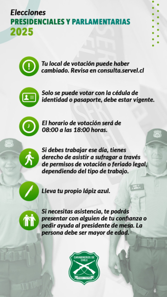 Carabineros de Chile te invita a ejercer tu derecho a voto con responsabilidad y compromiso cívico.