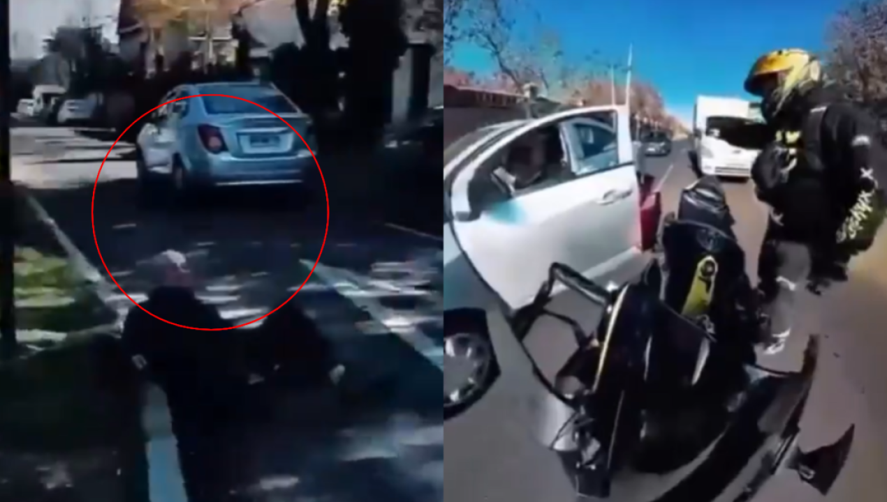Un motociclista que llevaba una cámara activada fue testigo del atropello y no dudó en iniciar una persecución tras la conductora. En el video, que luego se viralizó, se observa cómo el motociclista le exige detenerse mientras le advierte "Bájate... te tengo grabada". Aunque la conductora detuvo brevemente el vehículo, logró escapar nuevamente tras un descuido.