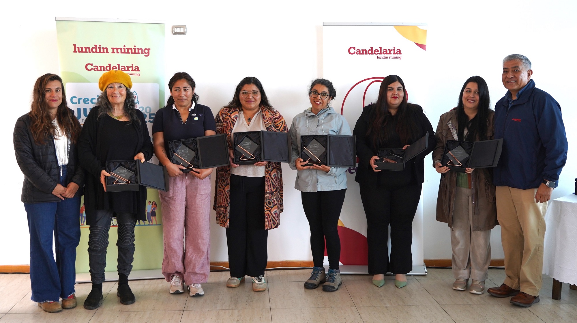 Un momento especial vivieron los emprendedores, emprendedoras y organizaciones sociales de Tierra Amarilla, Caldera y Copiapó, seleccionados en el fondo concursable “Creciendo Juntos” del Distrito Candelaria Lundin Mining, luego que firmaran los convenios que formalizan el inicio de los proyectos.