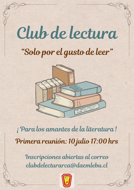 Las personas interesadas en participar deben inscribirse escribiendo al correo clubdelecturarca@daemlebu.cl, indicando nombre completo y el nombre y curso del estudiante con quien se relacionan dentro del establecimiento.