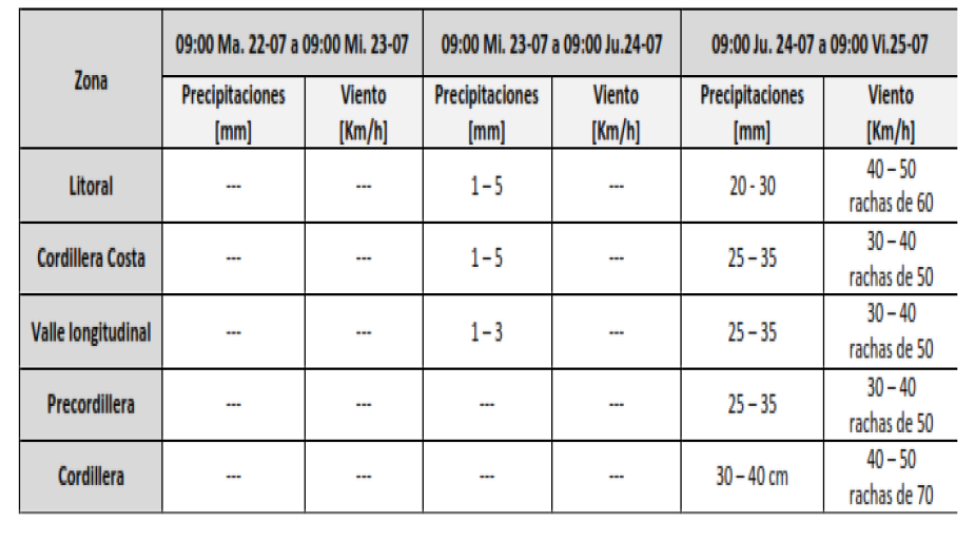 Se prevé la ocurrencia de viento de intensidad normal a moderado en los sectores del litoral, cordillera de la costa, Valle, Precordillera y Cordillera de la Región del Biobío.