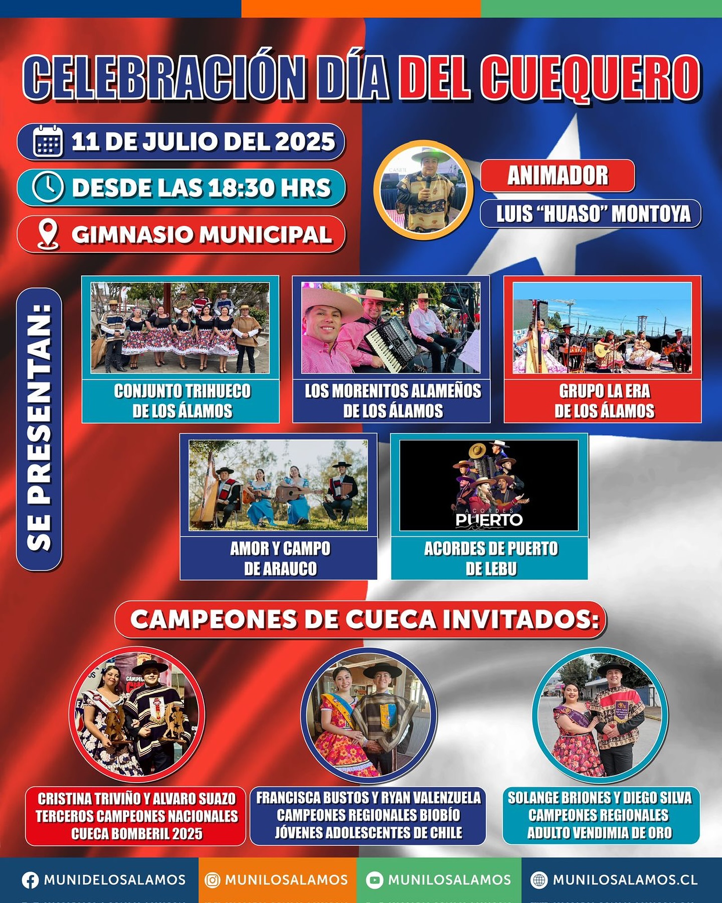 La Municipalidad de Los Álamos invita a toda la comunidad a participar de una jornada llena de tradición y música en vivo con motivo de la celebración del Día del Cuequero.