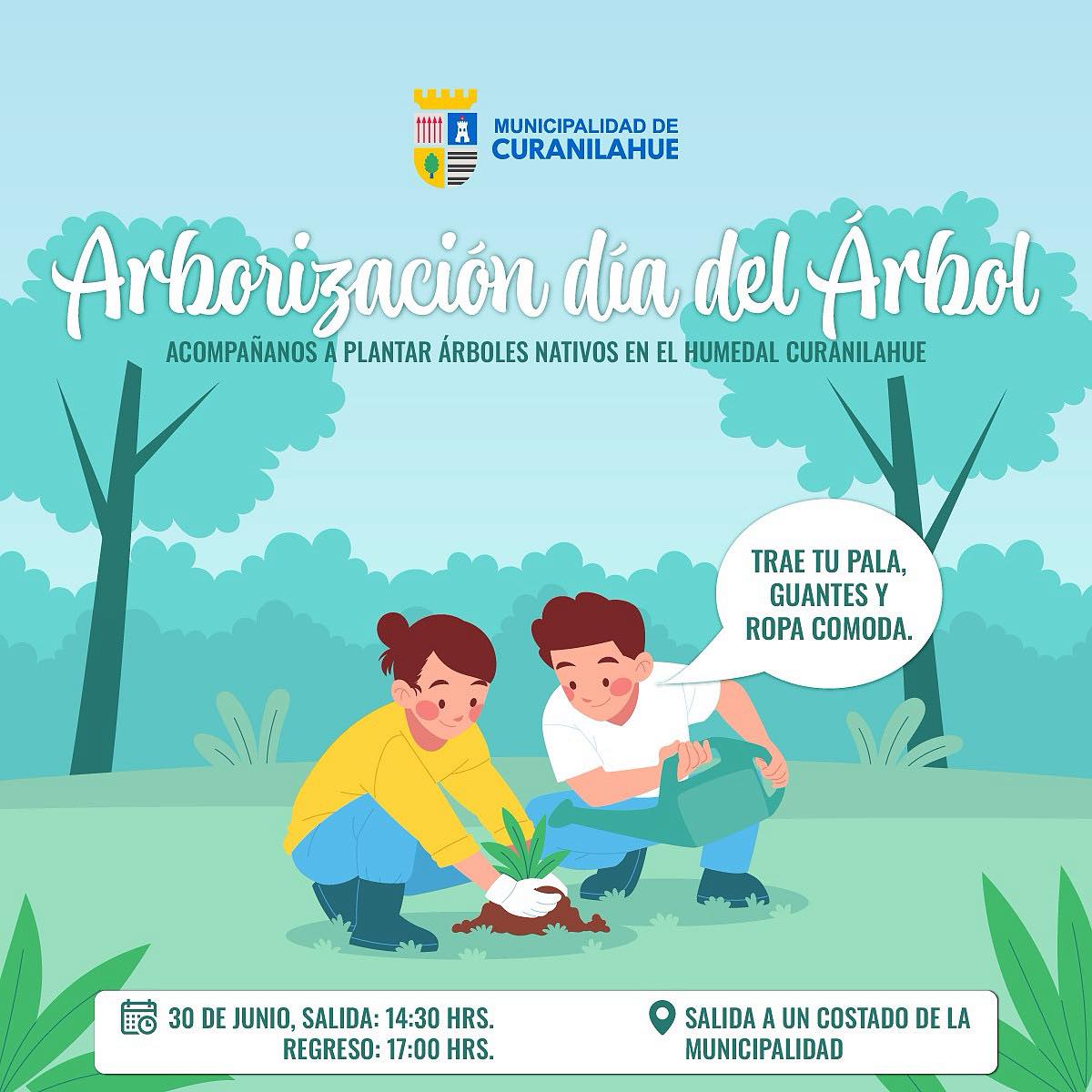 Con el objetivo de promover la restauración ecológica de espacios naturales y fomentar la conciencia ambiental en la comunidad, la Dirección de Medio Ambiente, Aseo y Ornato de la Municipalidad de Curanilahue invita a vecinas y vecinos a participar en una jornada de reforestación con árboles nativos en el Humedal Río Curanilahue.