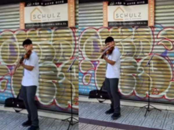 Joven de Talca toca violín en la calle para reunir dinero y comprarle una plancha a su madre