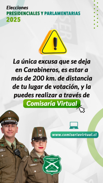 Carabineros de Chile te invita a ejercer tu derecho a voto con responsabilidad y compromiso cívico.