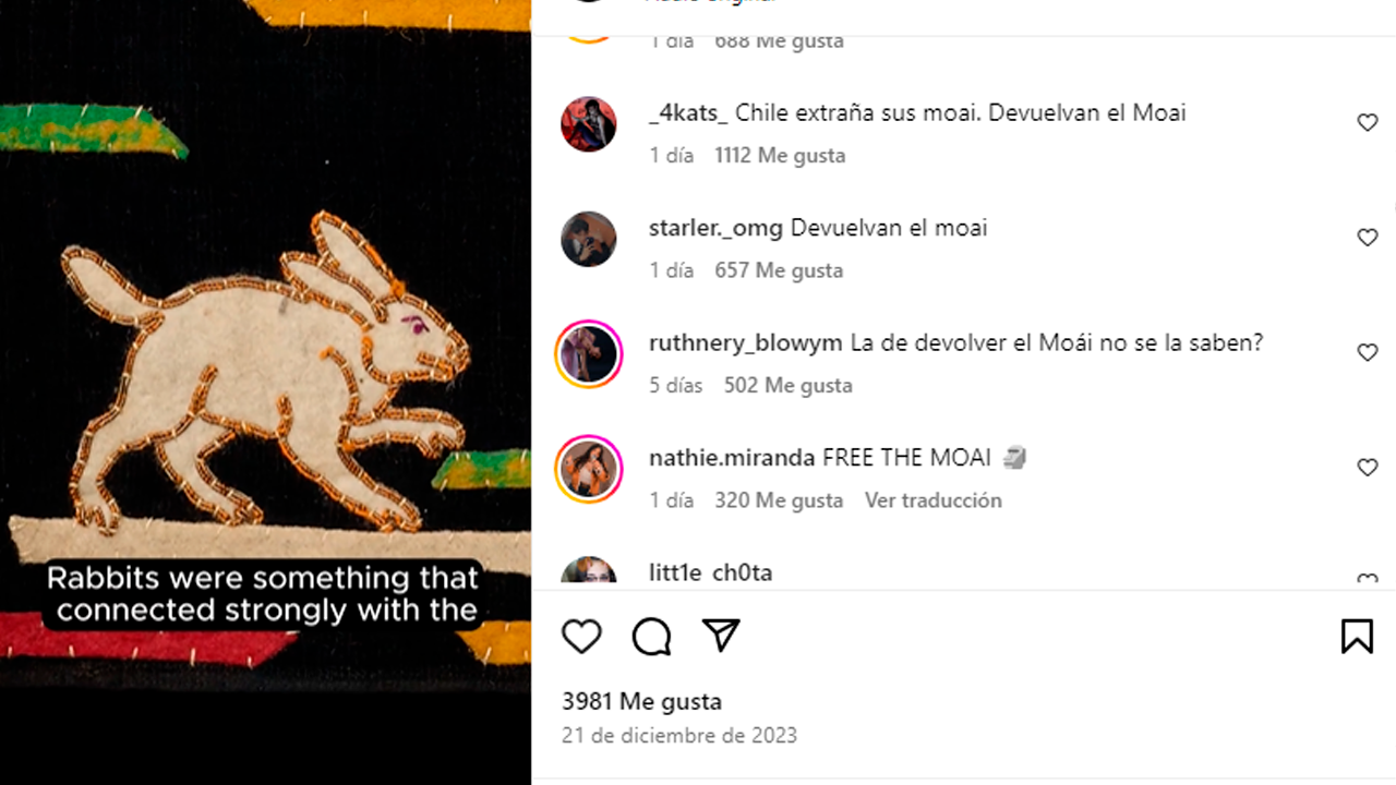 “Devuelvan el Moai”; “Museo de ladrones británicos deberían llamarse”, fueron parte de los comentarios que lograron apreciarse, antes de ser limitados.